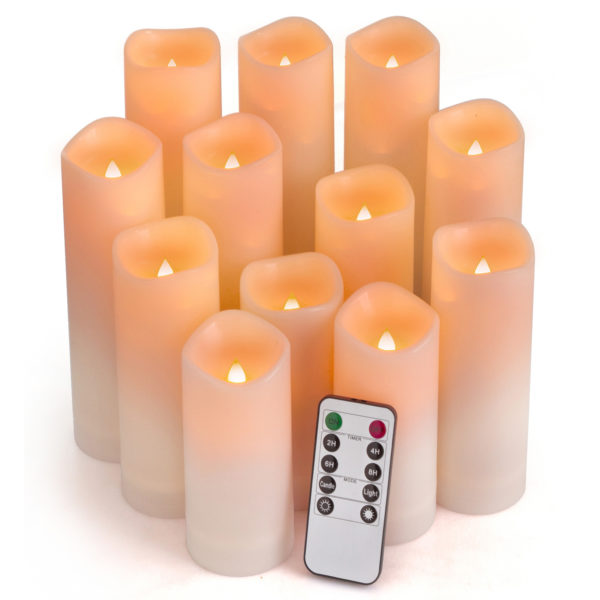 ENERGY SAVING, POWERFUL LEDS: This value pack comes with 12 LED candles(each 2.1″ diameter), remote control x 2. Manual x1. Battery operated by 2 x AA batteries(Not included) per candle. Use of 2 high-grade AA batteries that will provide 150 hours of continuous ambiance.